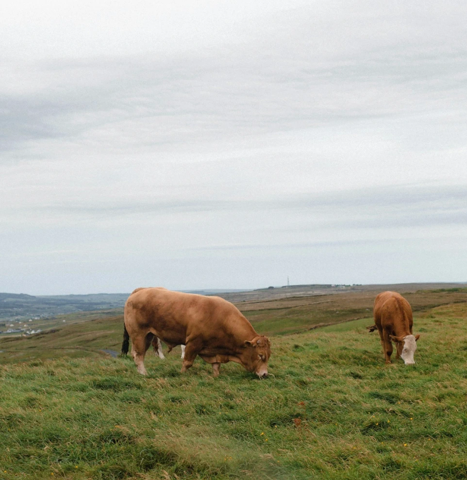Our cattle are raised the way nature intended—on open pasture, grazing on grasses and seasonal forages rather than confined in feedlots. They spend their days roaming, grazing, and resting in a low-stress environment that supports their natural behavior.